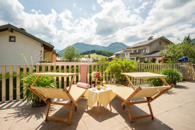 Terrasse mit Blick in die Chiemgauer Alpen