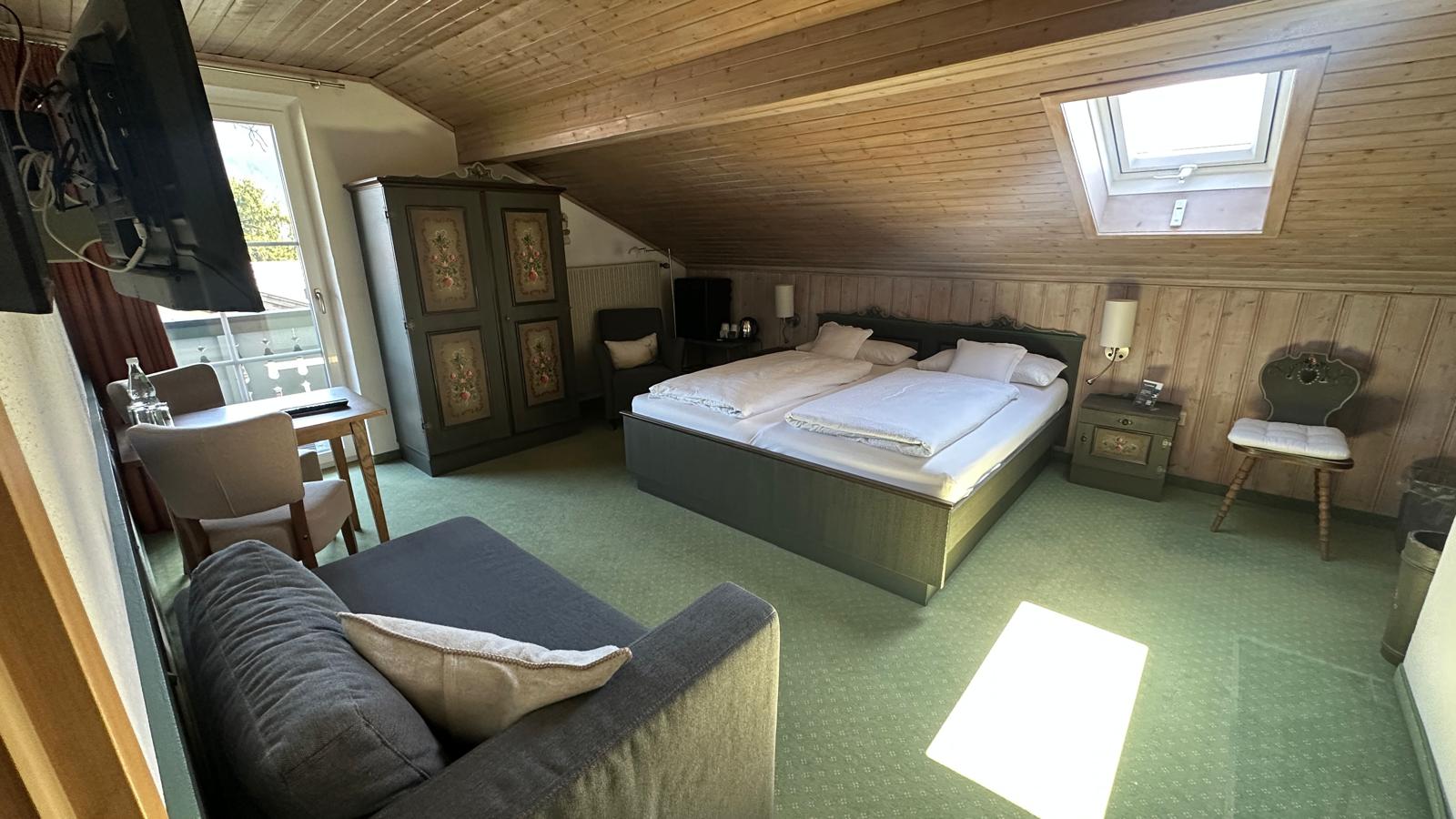 Unser helles und freundliches Doppelzimmer Komfort bietet Ihnen Ruhe und Entspannung. Es ist ausgestattet mit Dusche/WC, Flat-TV, Kühlschrank, Radio-Wecker und Safe. Genießen Sie den herrlichen Bergblick von Ihrem eigenen Balkon.